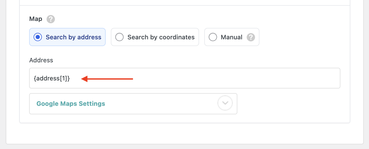 - Manual: this allows you to input both the address and coordinates, without attempting to geocode the value.