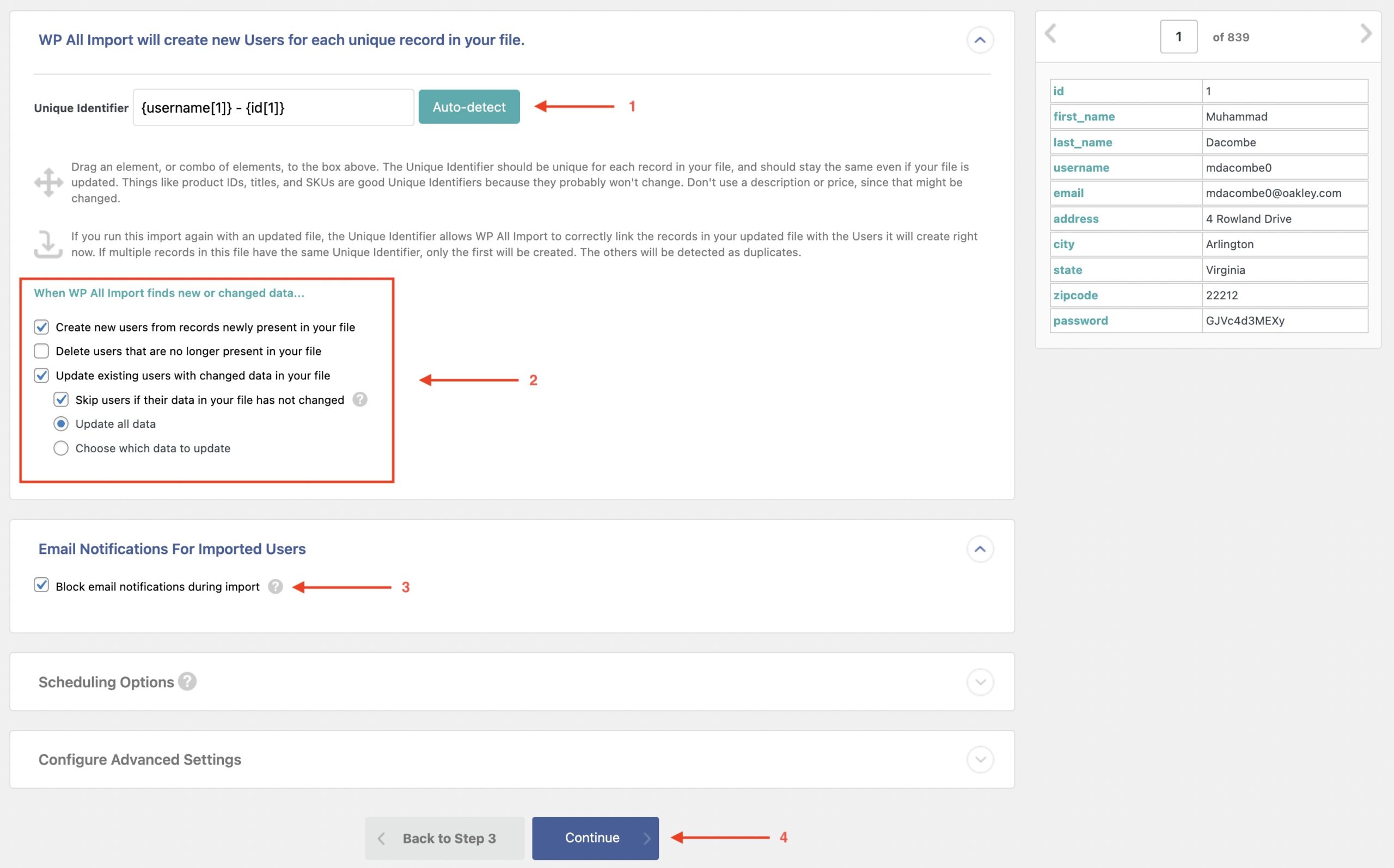 - You do not have to worry about this set of options for an import of new users. But if you re-run this import, this set of options lets you instruct WP All Import on how to handle issues, such as whether the import should delete or update existing and previously imported users.