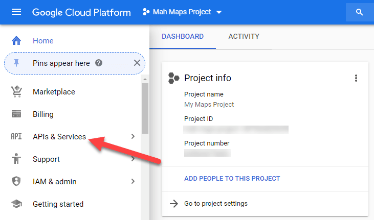 3. Enable the Geocoding API for the project by going to APIs & Services at https://console.cloud.google.com.