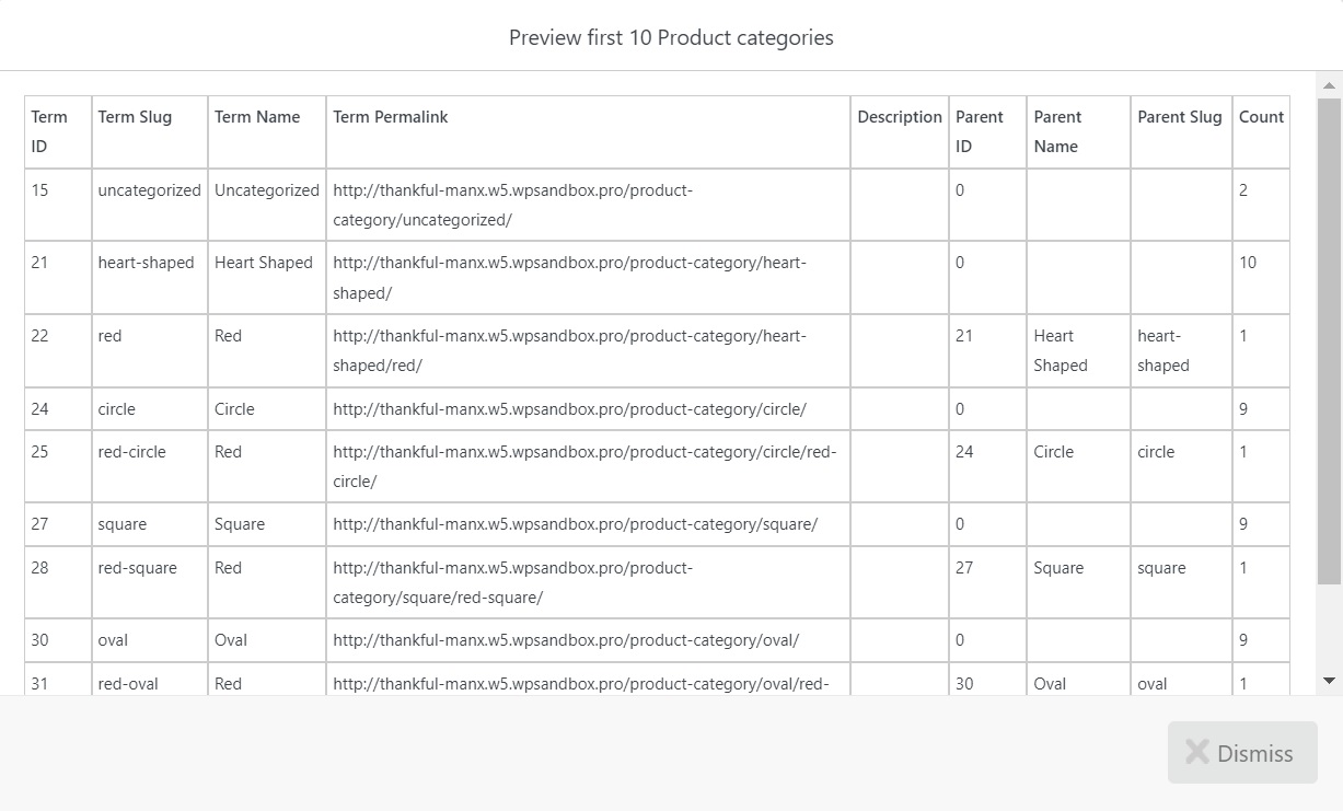 In this case, we are asking to export all the categories with a Parent Name that equals "Heart Shaped", i.e. all the subcategories of the Heart Shaped category.