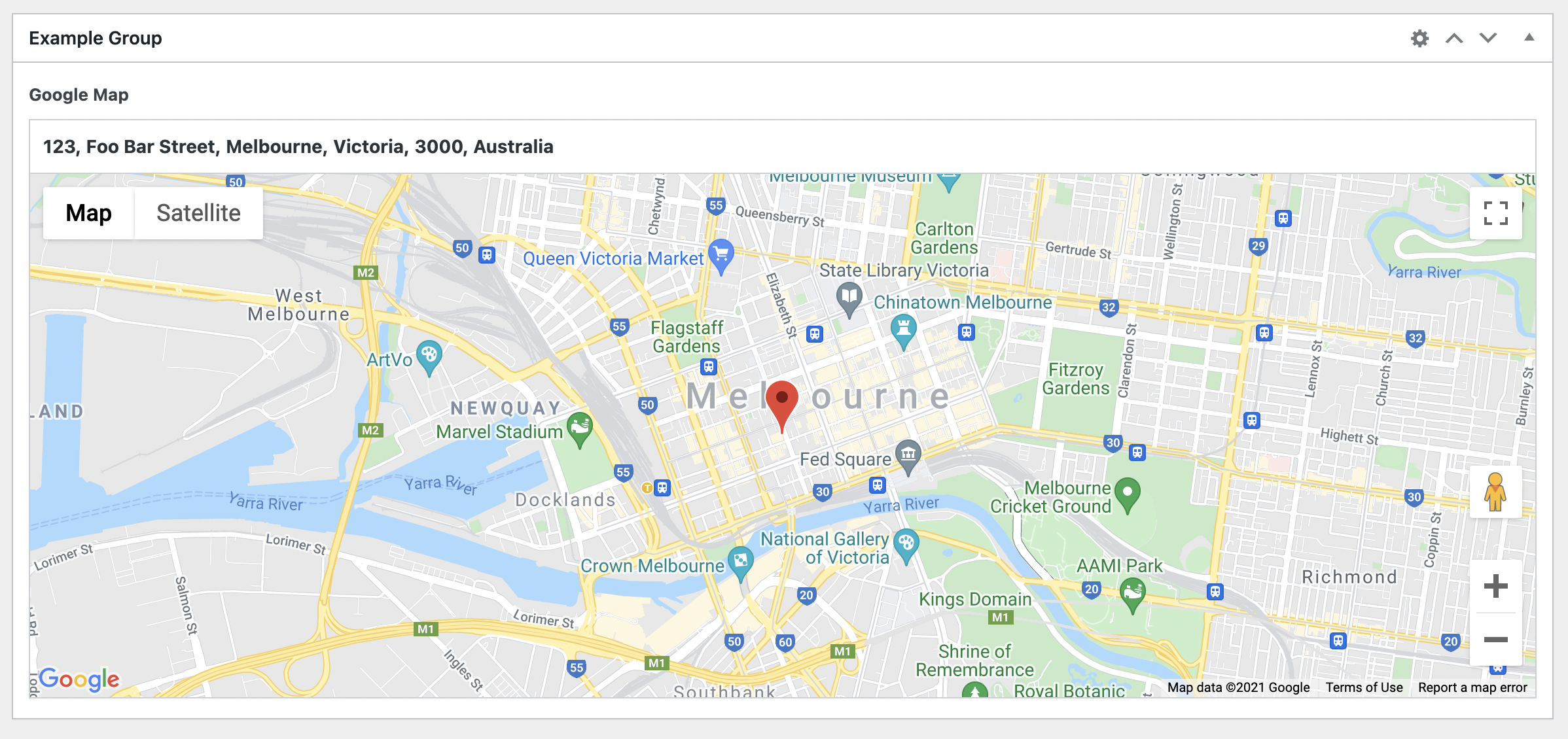 123, Foo Bar Street, Melbourne, Victoria, 3000, Australia. - _lat: Exports the latitude of the inserted address. Example: