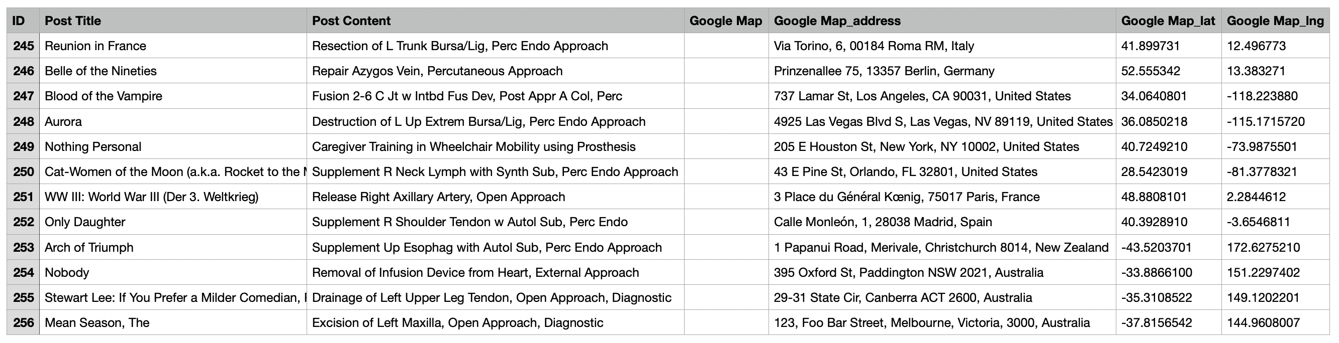 -37.8156542. - _lng: Exports the longitude of the inserted address. Example: