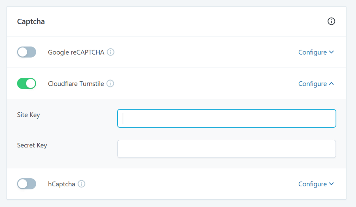 To prevent automated spam, you can safeguard your affiliate registration and login forms by integrating with CAPTCHA services. SliceWP supports Google reCAPTCHA, Cloudflare Turnstile, and hCaptcha to block bot sign-ups.