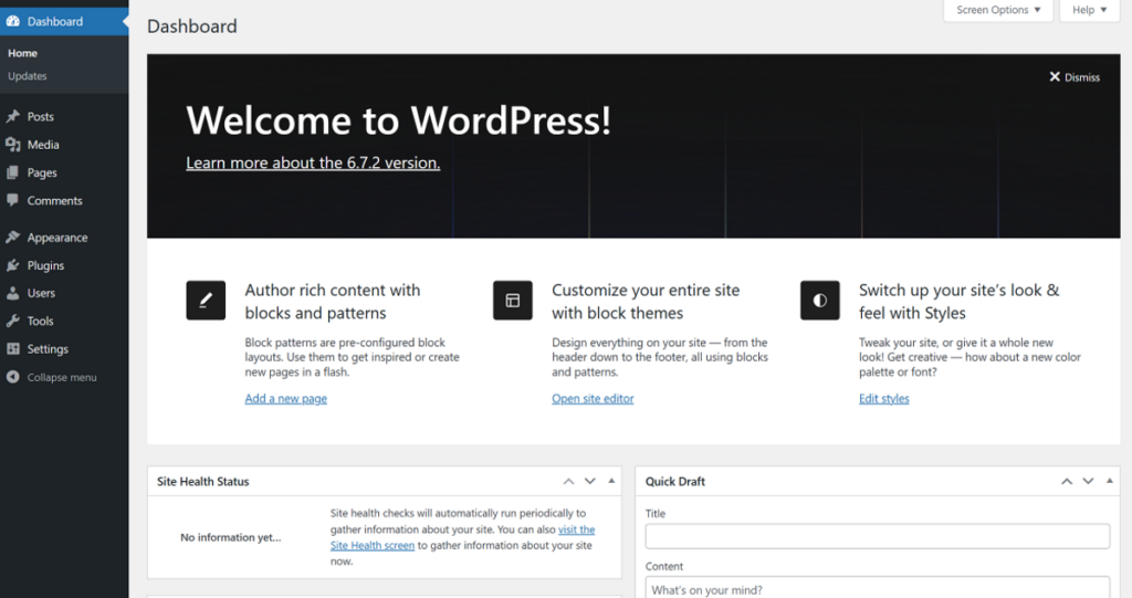 The WordPress user experience is completely different. When you log in, your primary interface is the WordPress dashboard itself.
