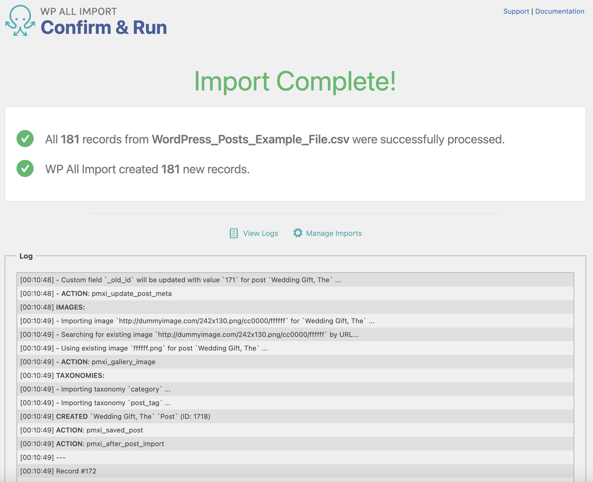 So long as everything looks correct, click on Confirm & Run Import to run the import. You'll see the following screen once the import completes: