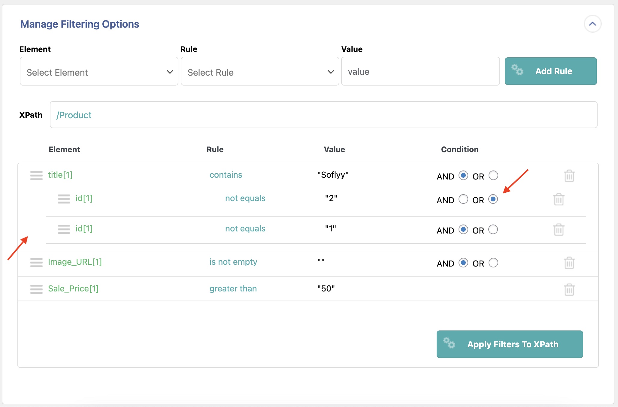 WP All Import filters data using XPath. The visual filter designer lets you visually construct an XPath expression. In this article, we'll describe how to use this designer.