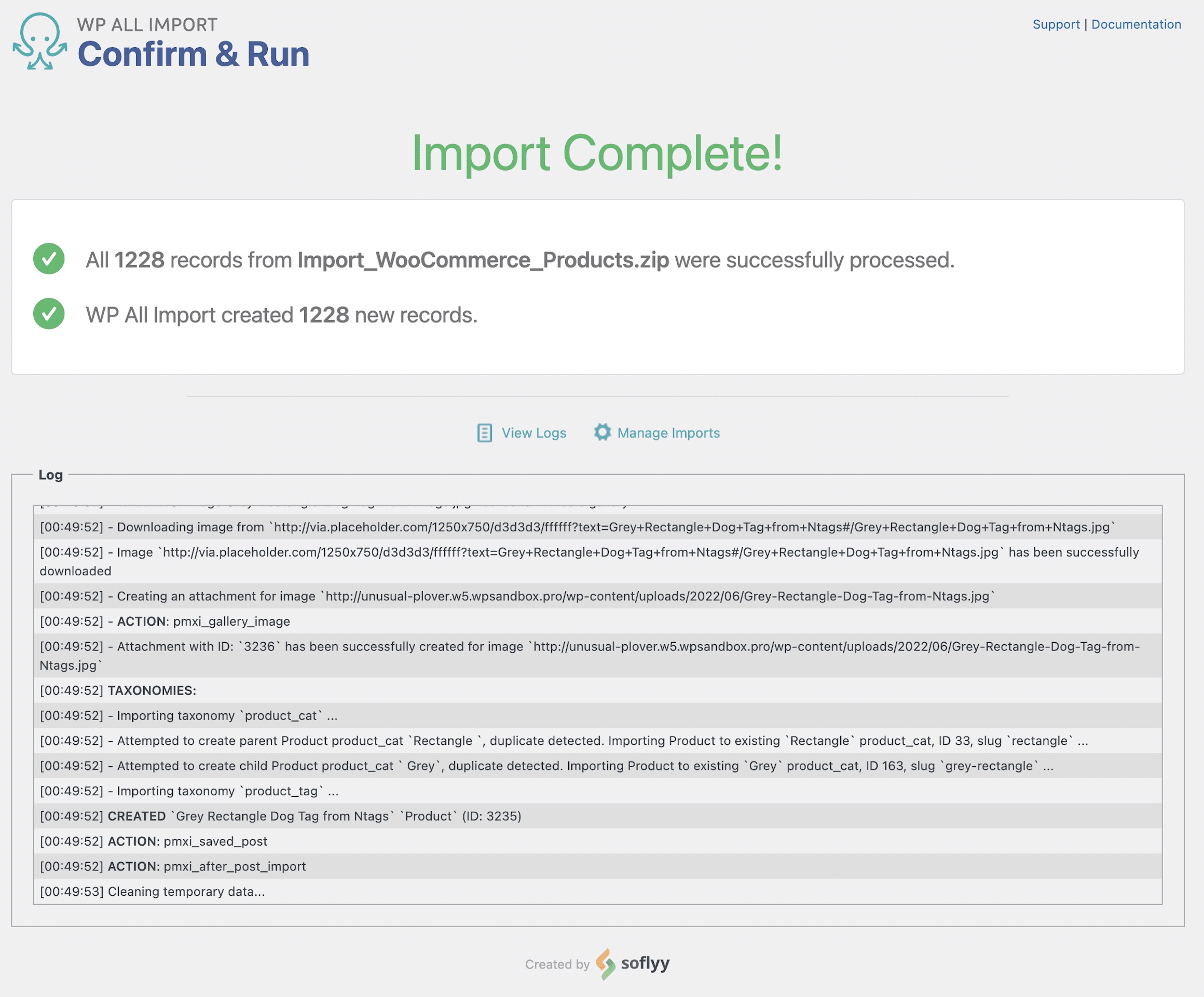 If everything looks good, click Confirm & Run Import to continue and run the import. Once the import completes, the following screen will display: