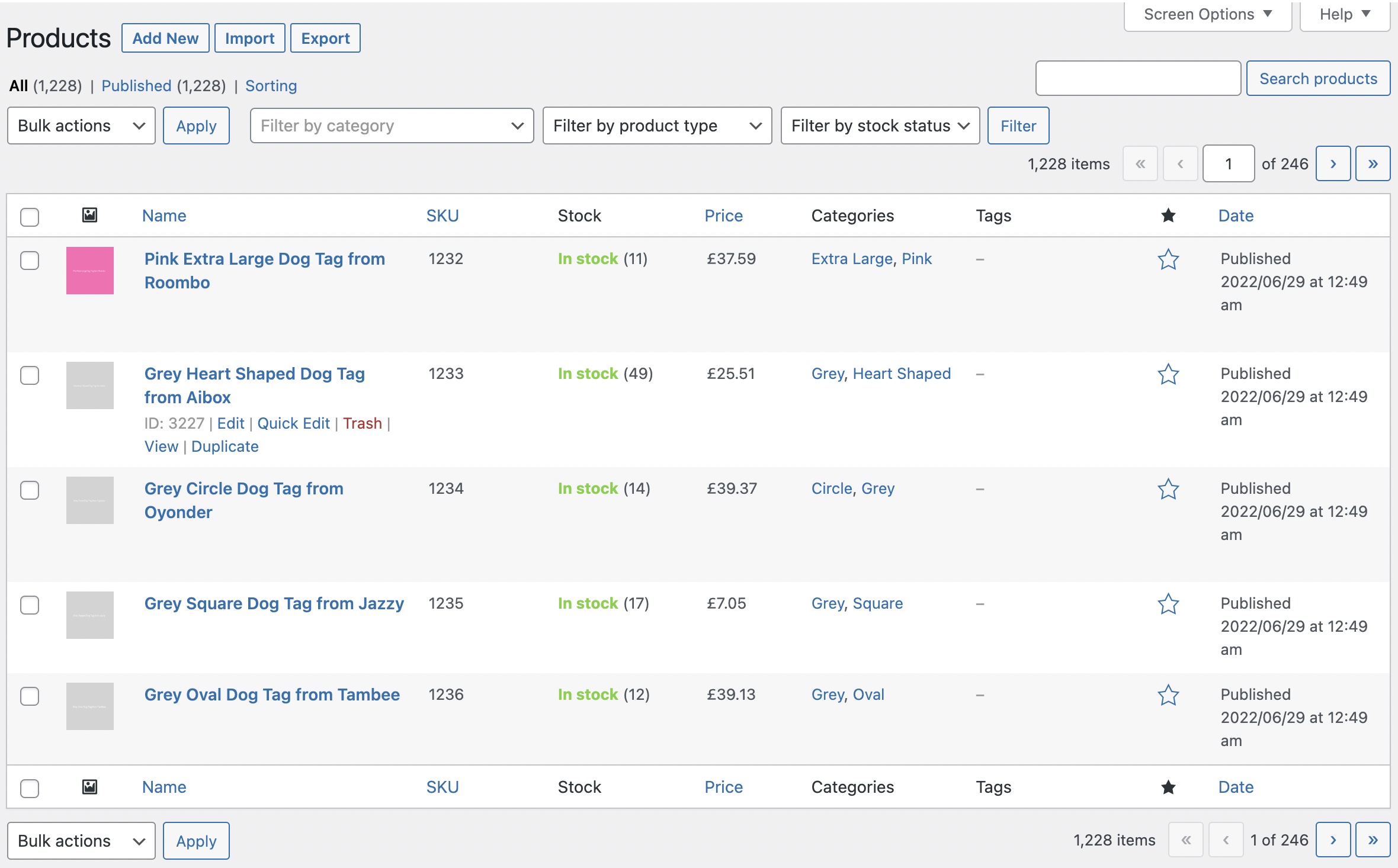 - SKU: stock keeping unit, used internally by WooCommerce to keep track of your products.
