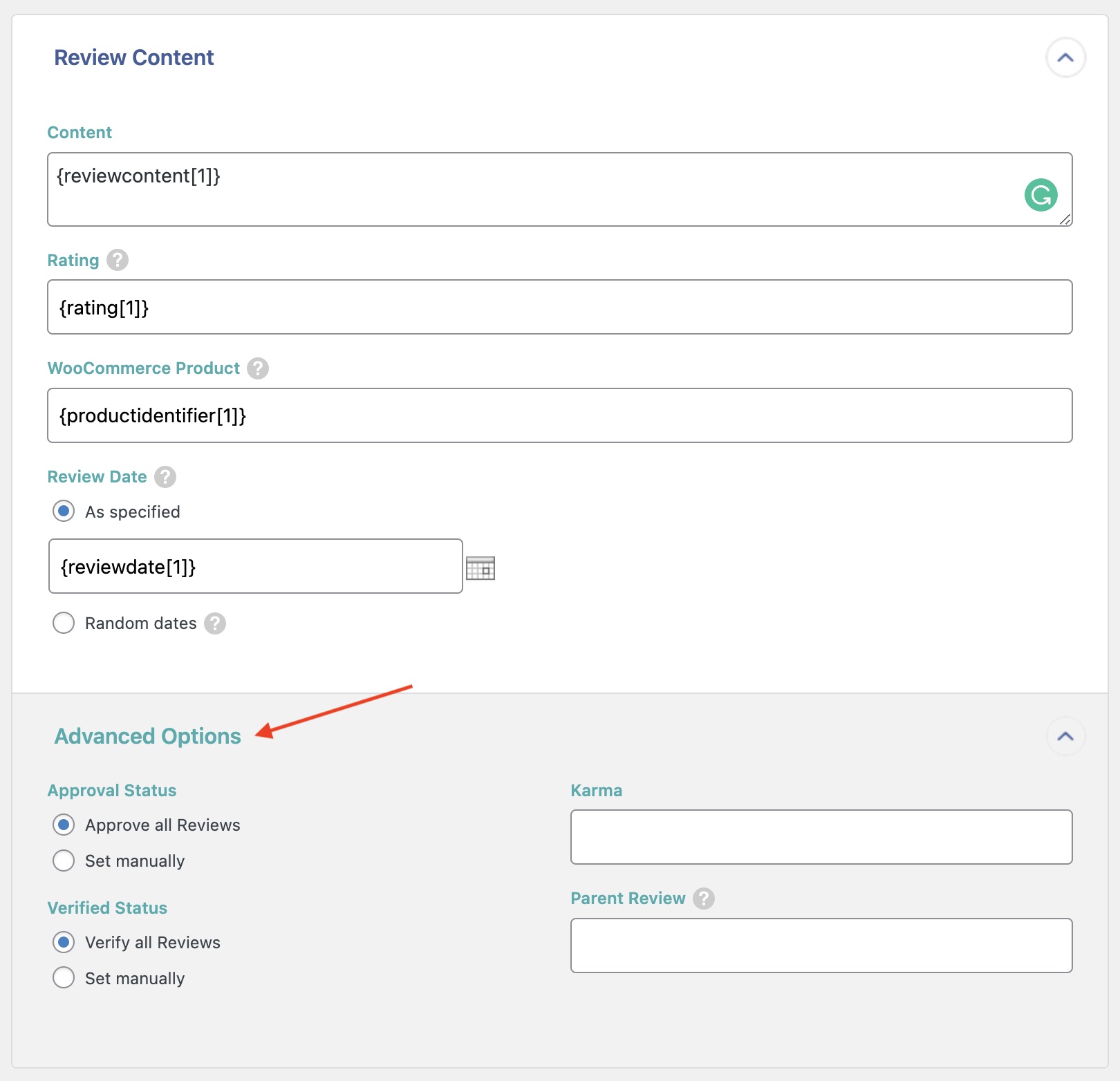 Here, you can map Author Name and Author Email. You can add additional author information under Advanced Options: