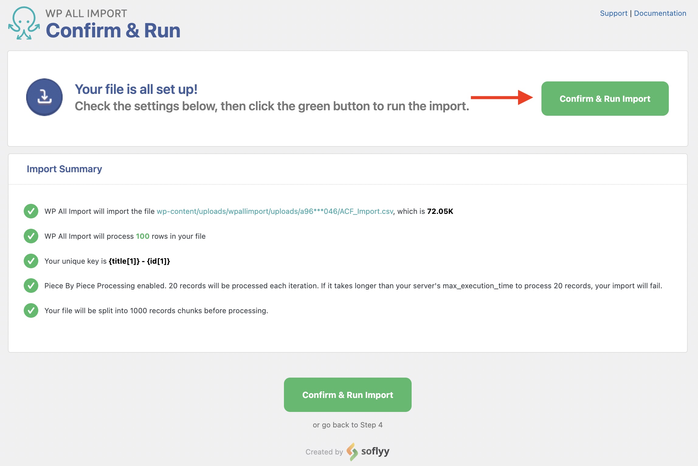 Keep in mind that your Advanced Custom Fields and Fields Groups need to be created and defined for posts in the ACF plugin prior to importing data.