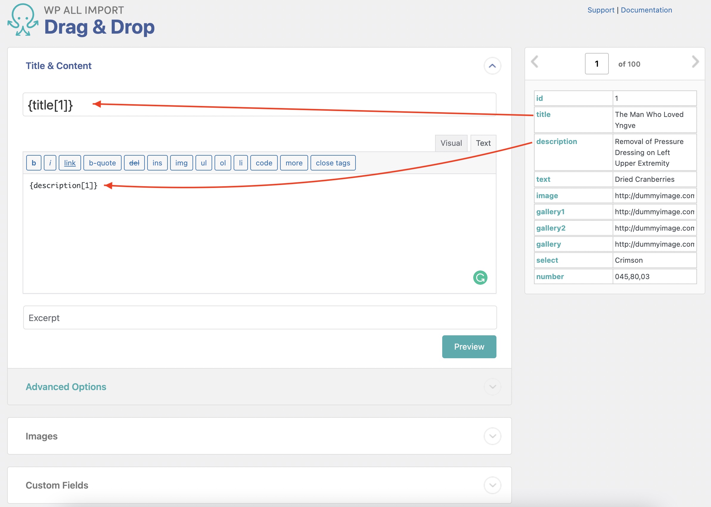 - Use our Drag & Drop tool to select the ACF fields that you want to export.