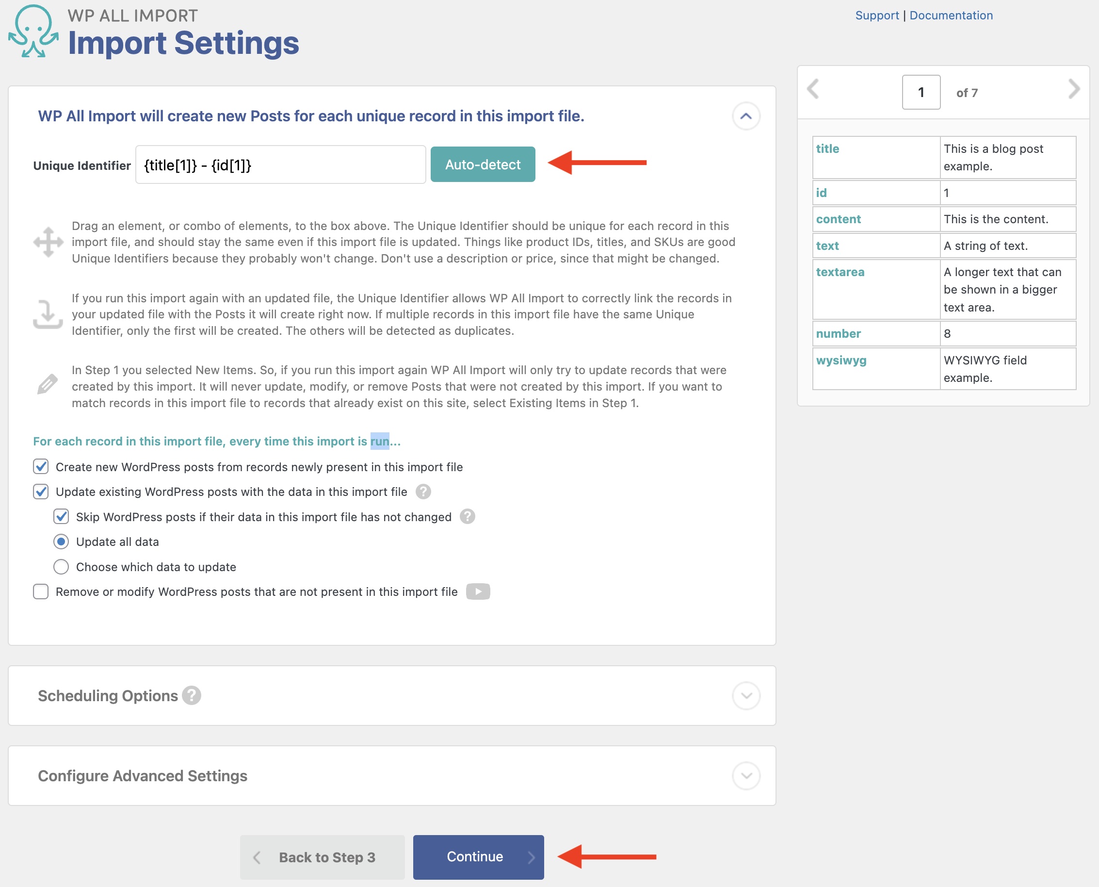 To do this, just click on Auto-detect. You can also define this using import fields.