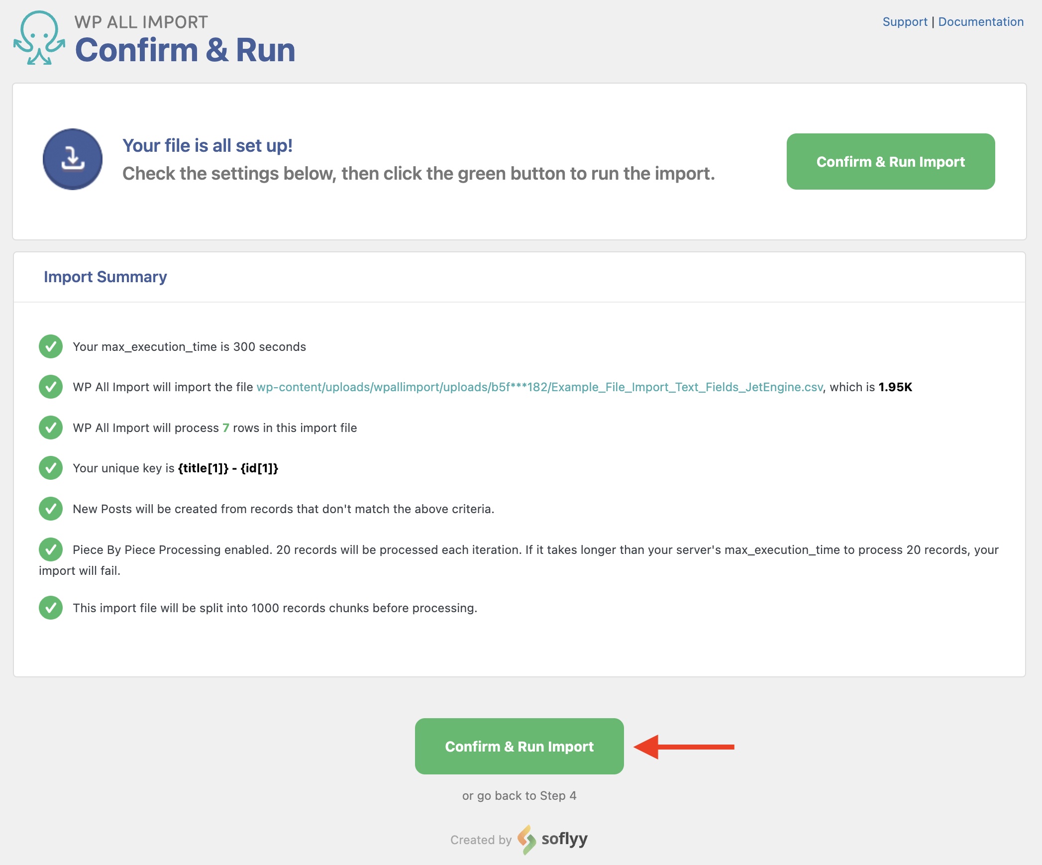 You now see the Confirm & Run interface, along with an Import Summary section where you can review what the import will do.