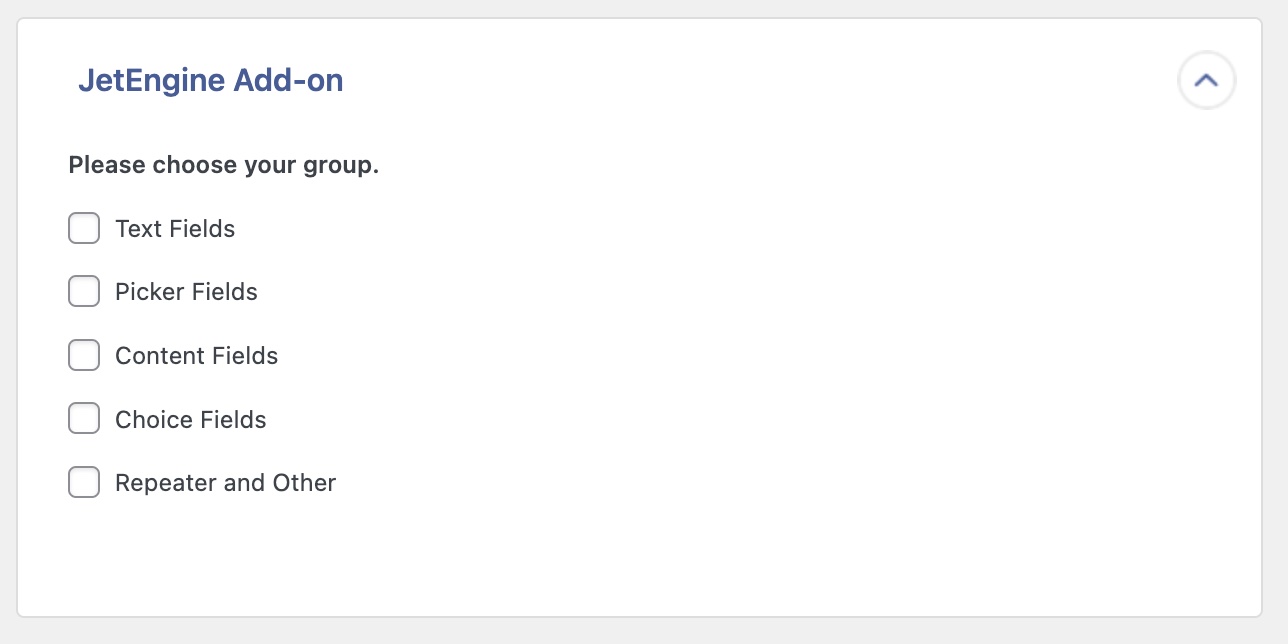 The JetEngine Add-On section is where you define the JetEngine fields. Locate that section:
