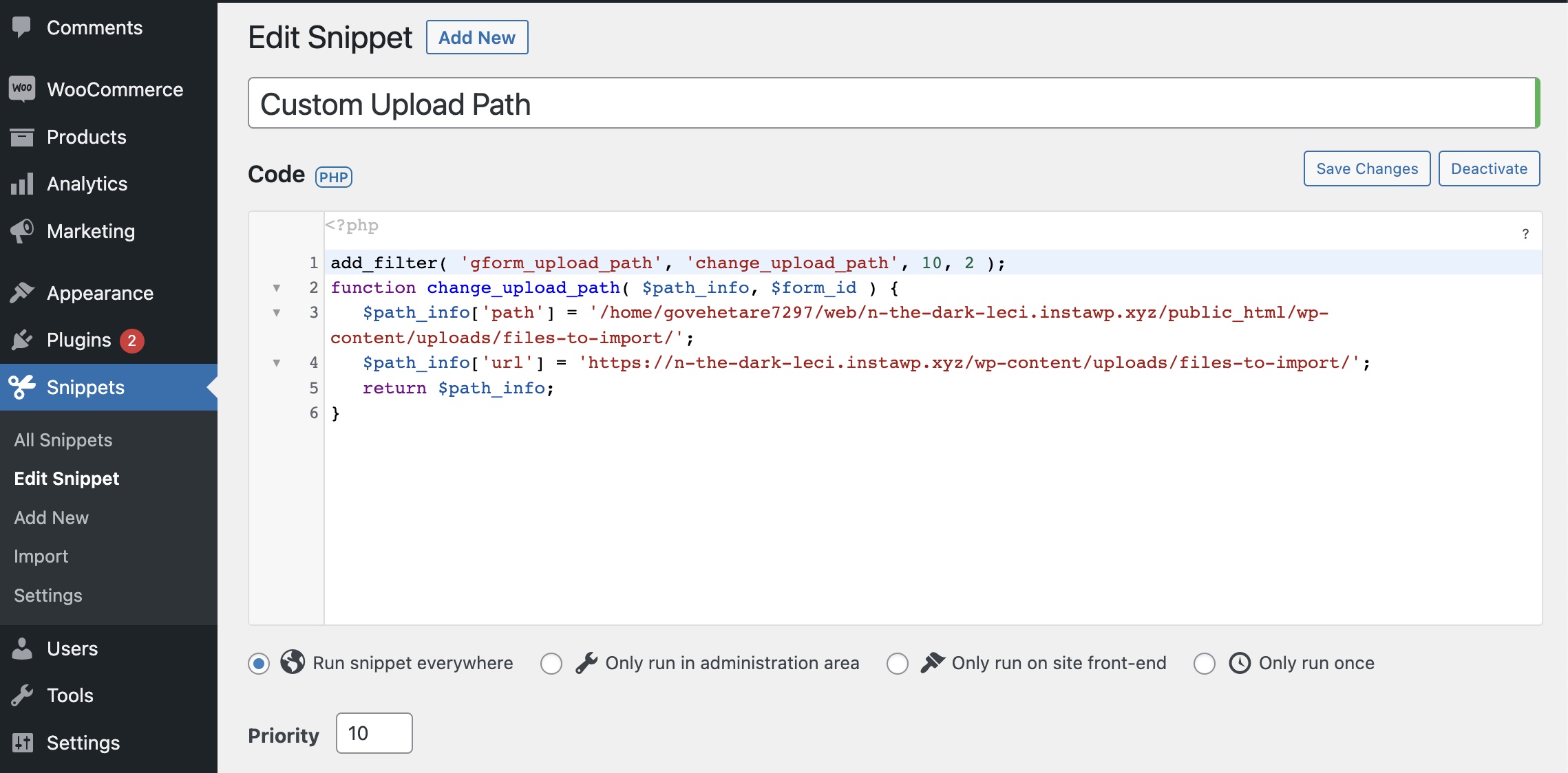 }This code has to be saved in your child theme's functions.php file or in a plugin like Code Snippets.