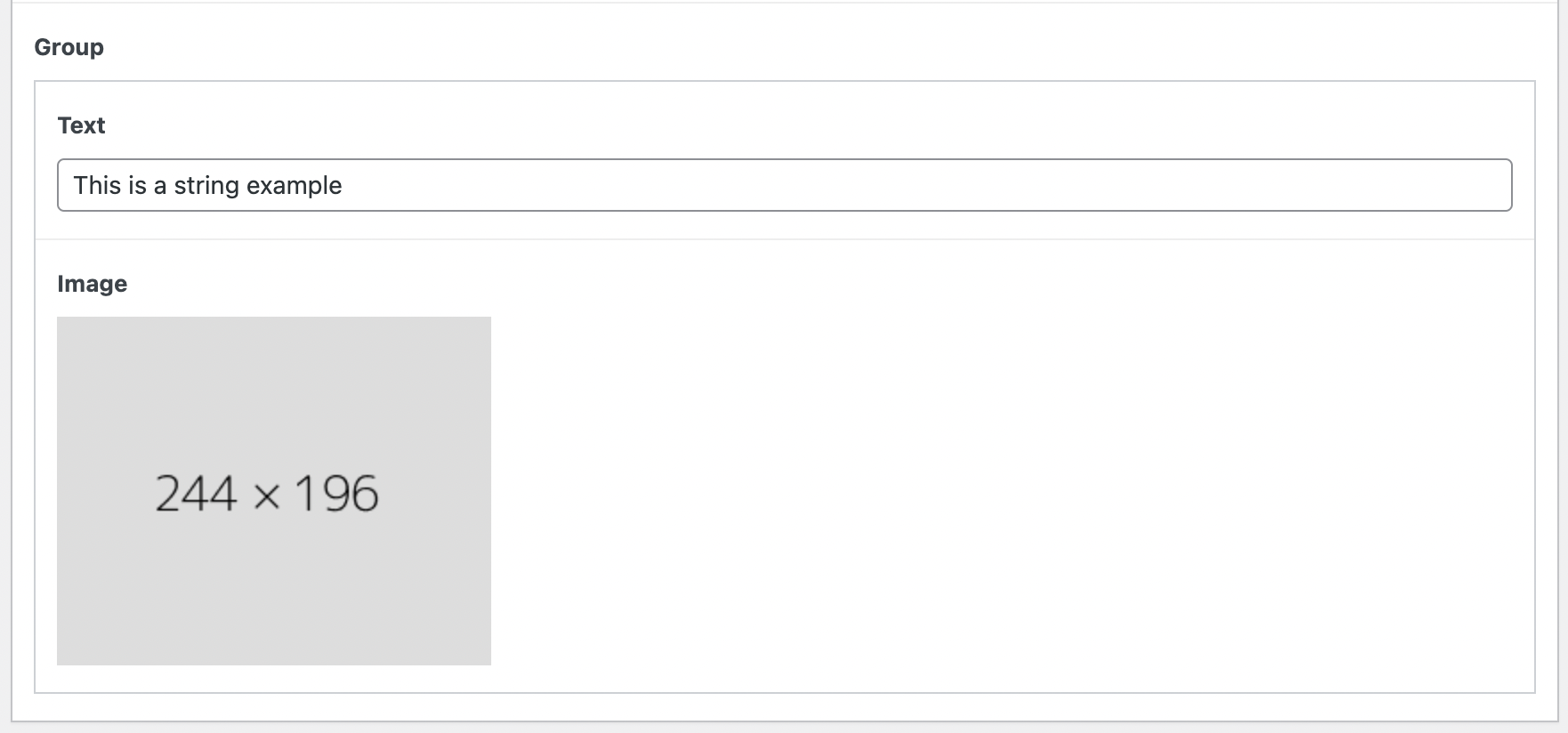 For example, this ACF group field contains a text field and an image field: