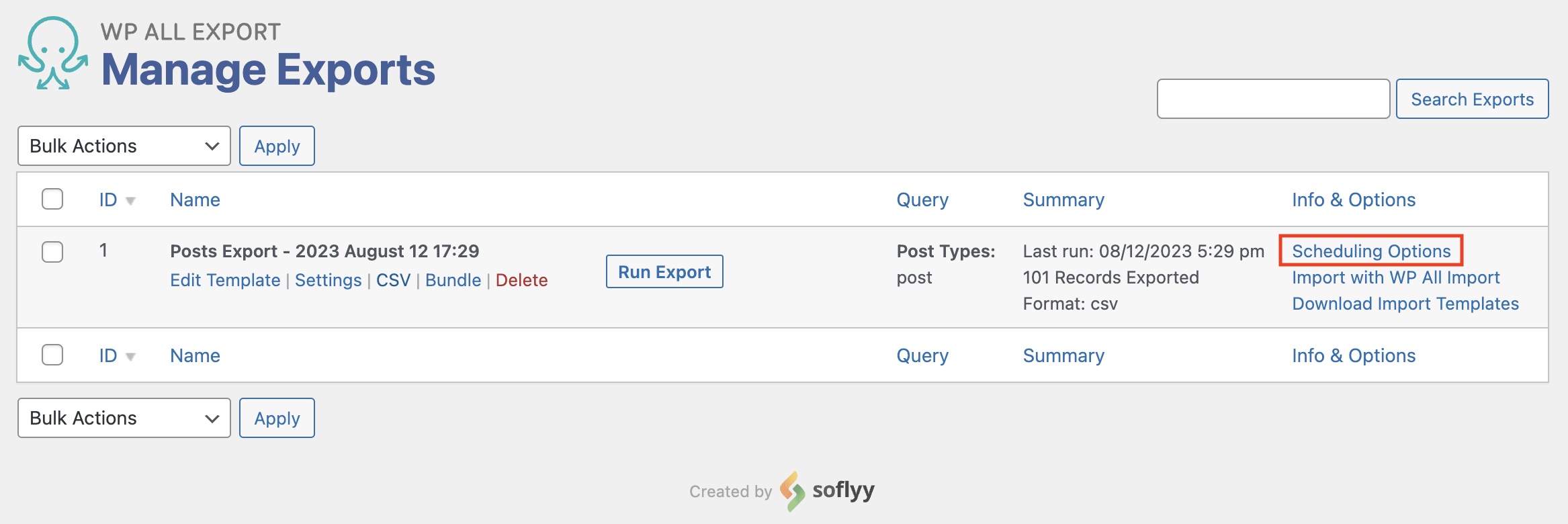 Use our Automatic Scheduling Service to schedule exports directly from within WP All Export.