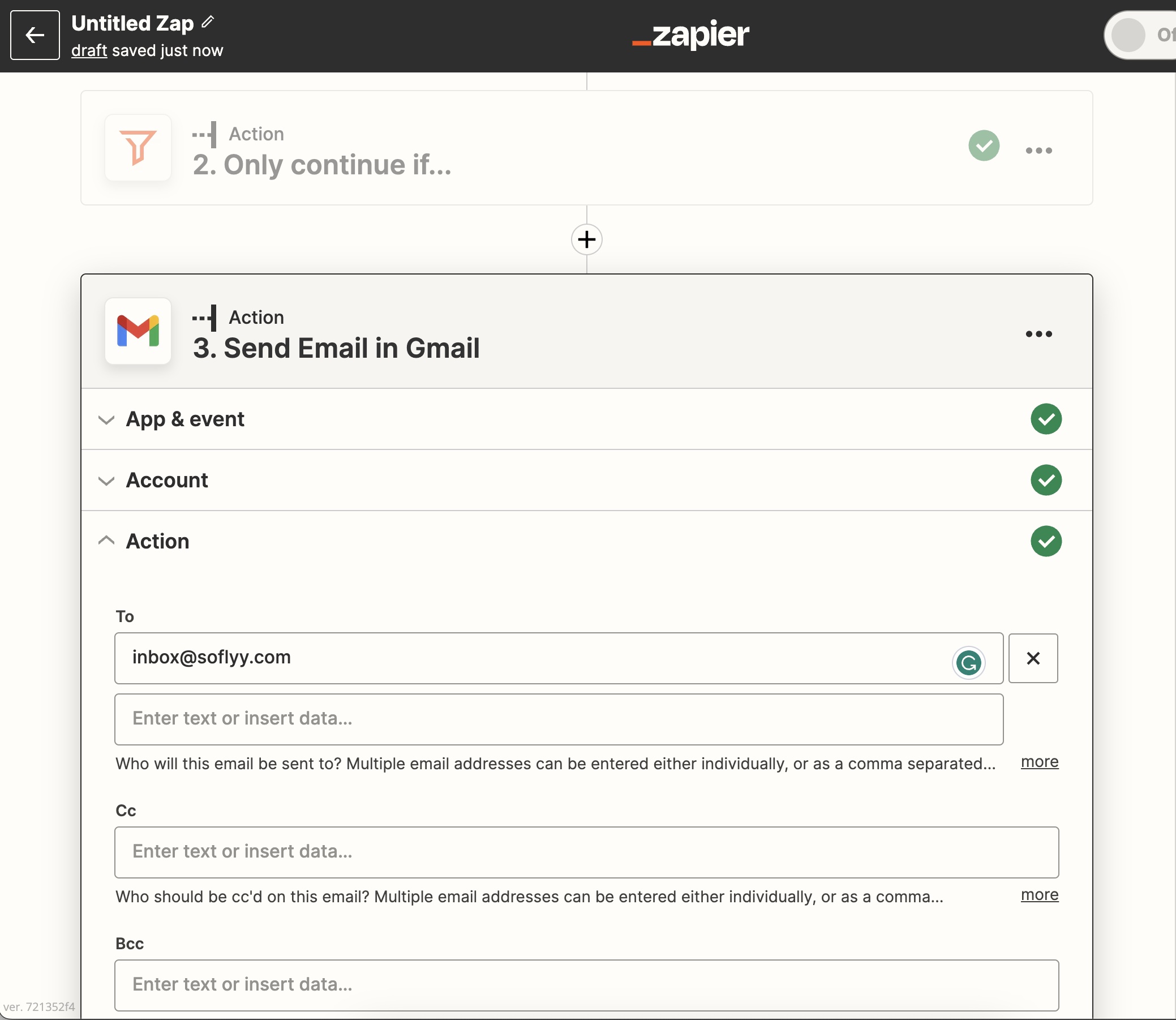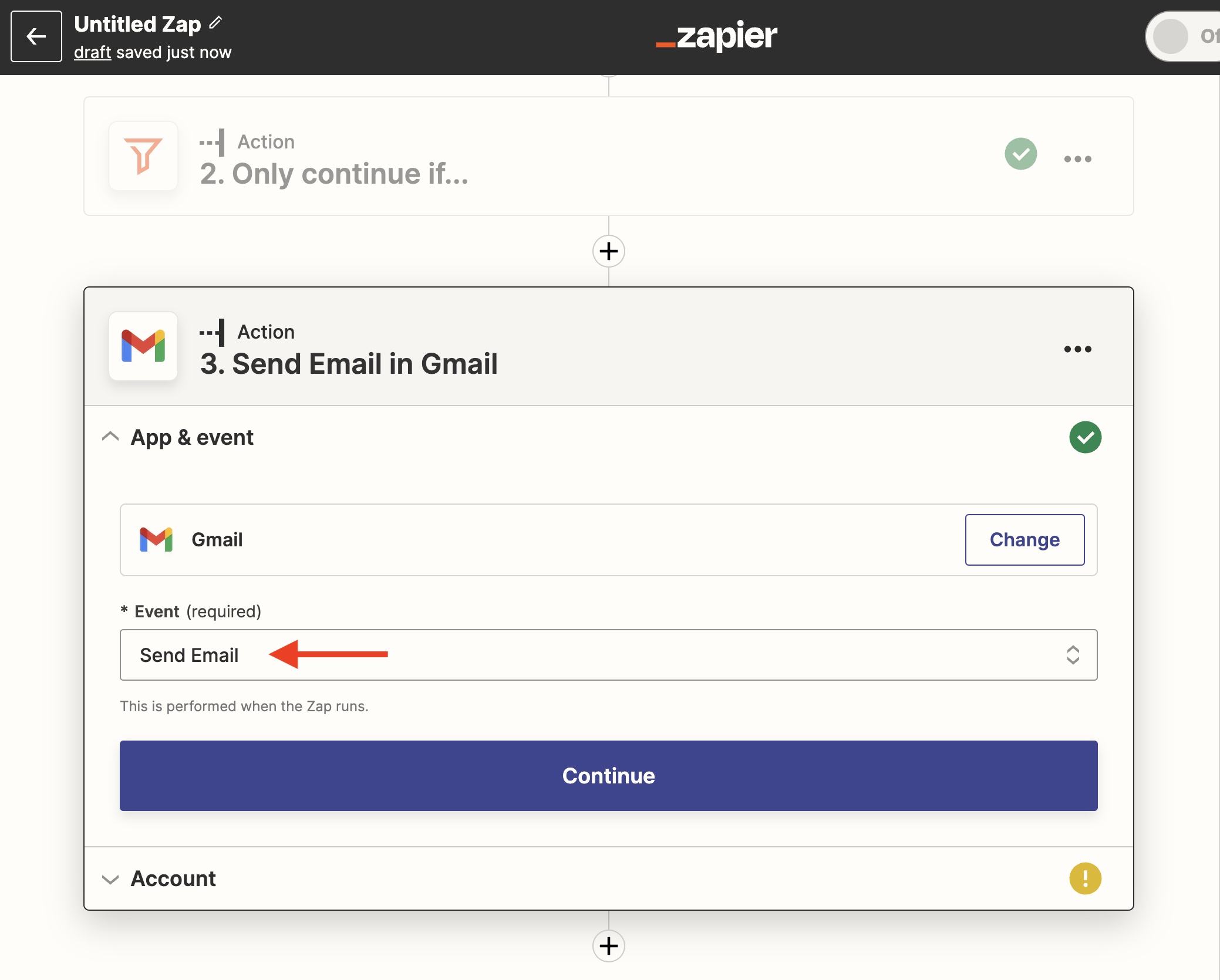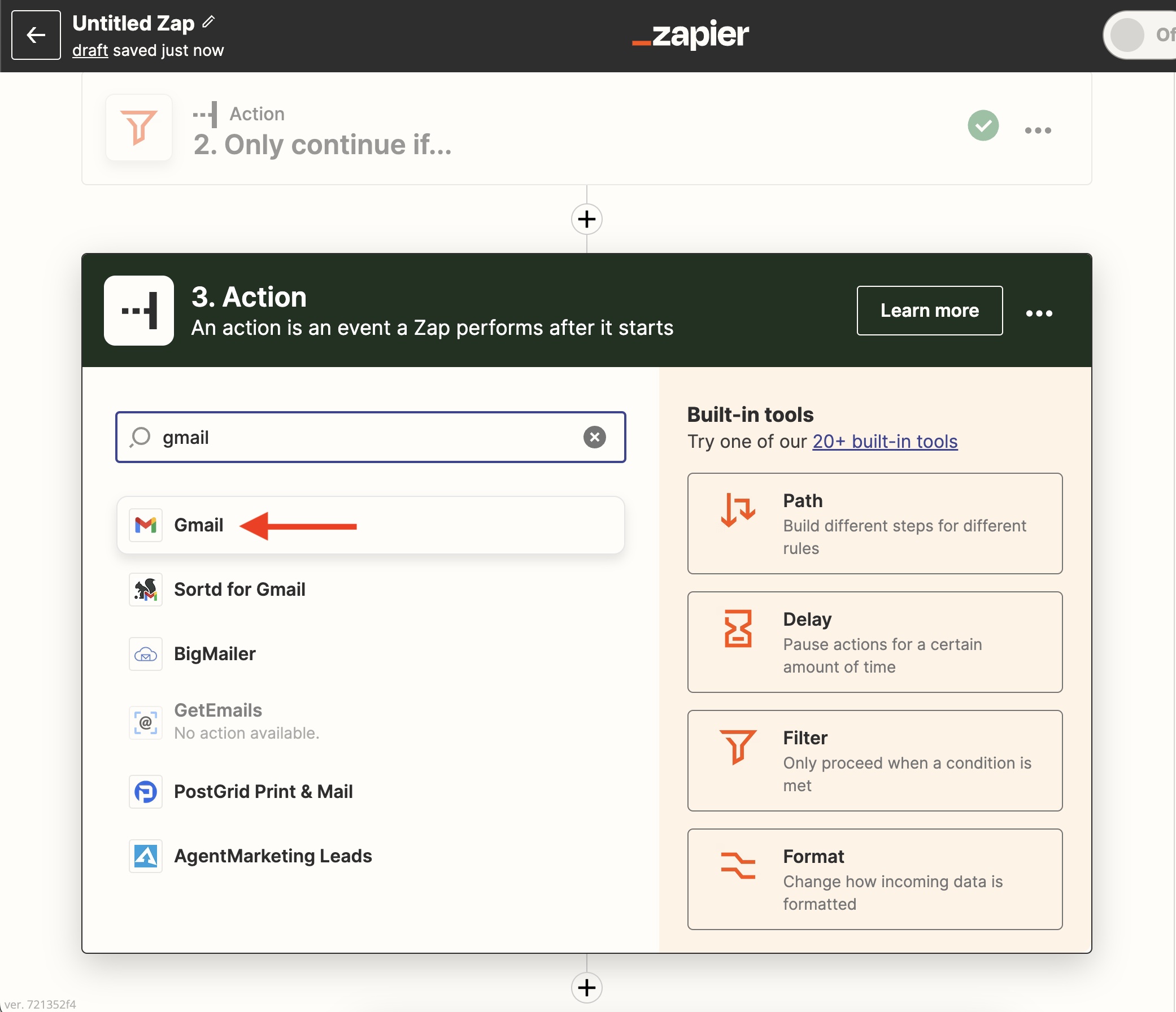 Keep in mind that you can add multiple actions or workflows in this part. For example, you can add a filter so that this Zap only runs when the Export ID matches a certain value: