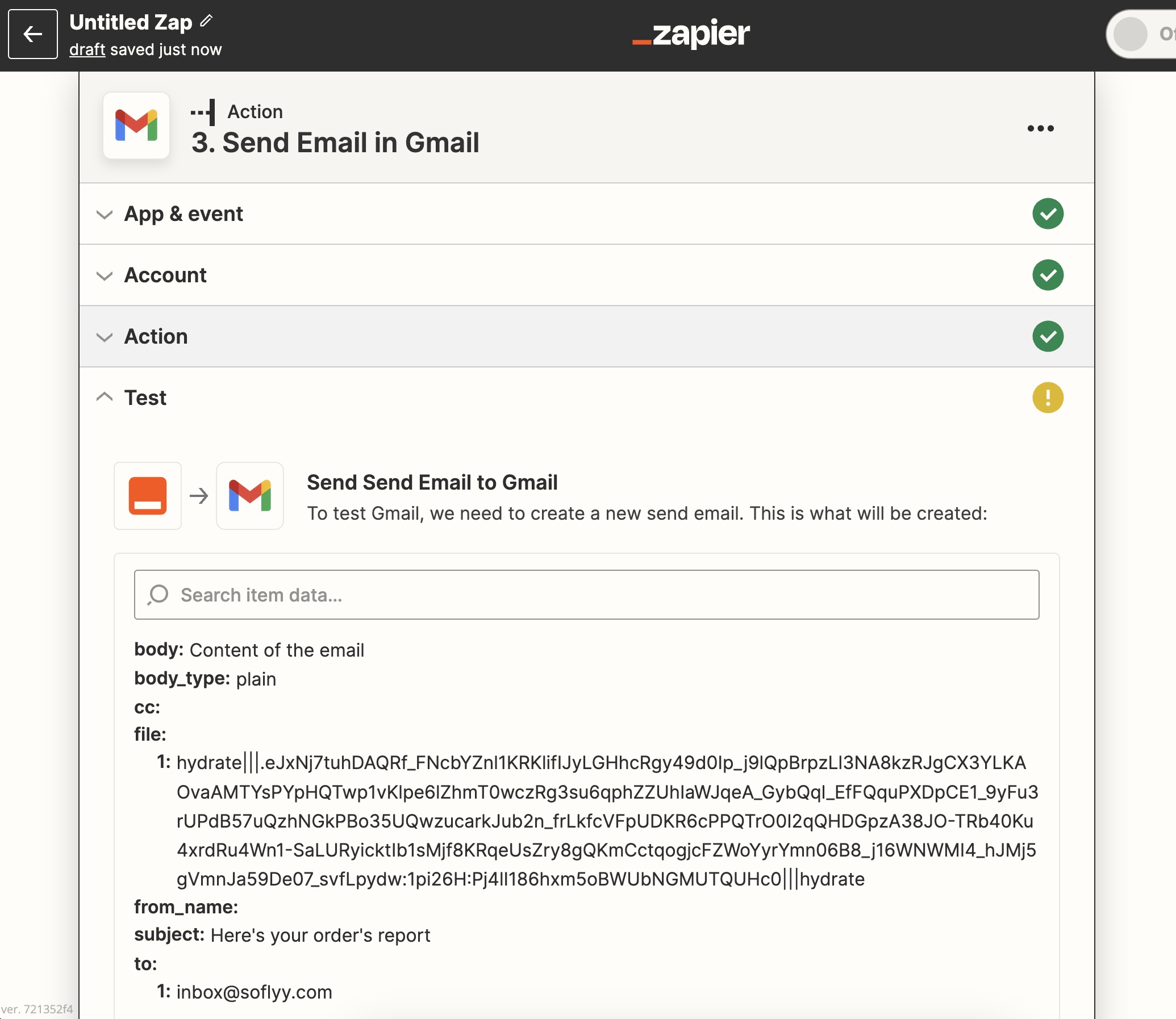 You can chain other apps in this step, such as adding the exported orders data to a Google Drive. You're almost done connecting Zapier and WordPress.