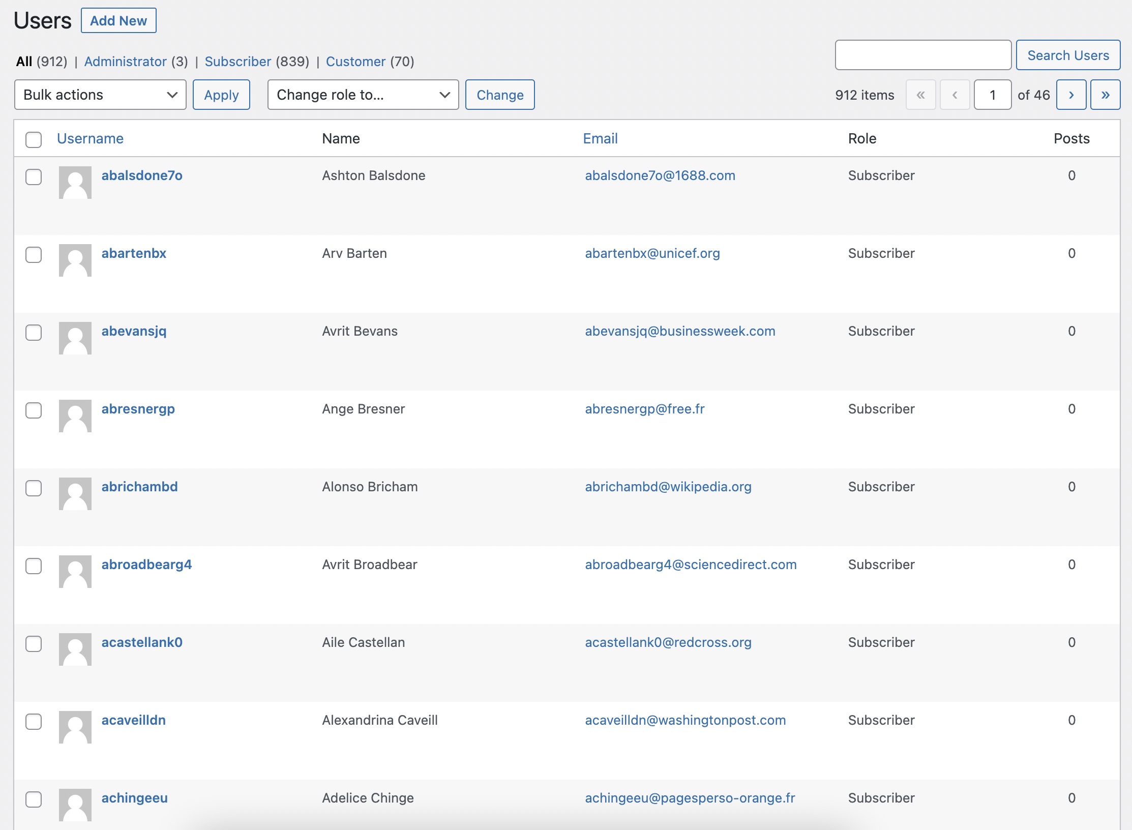 The main focus of this guide is on migrating WordPress users from one site to a different one. However, if you want to perform specific changes to the WordPress users contained on the same site, you can use the bulk edit process, which allows you to modify the information from all user records in bulk.