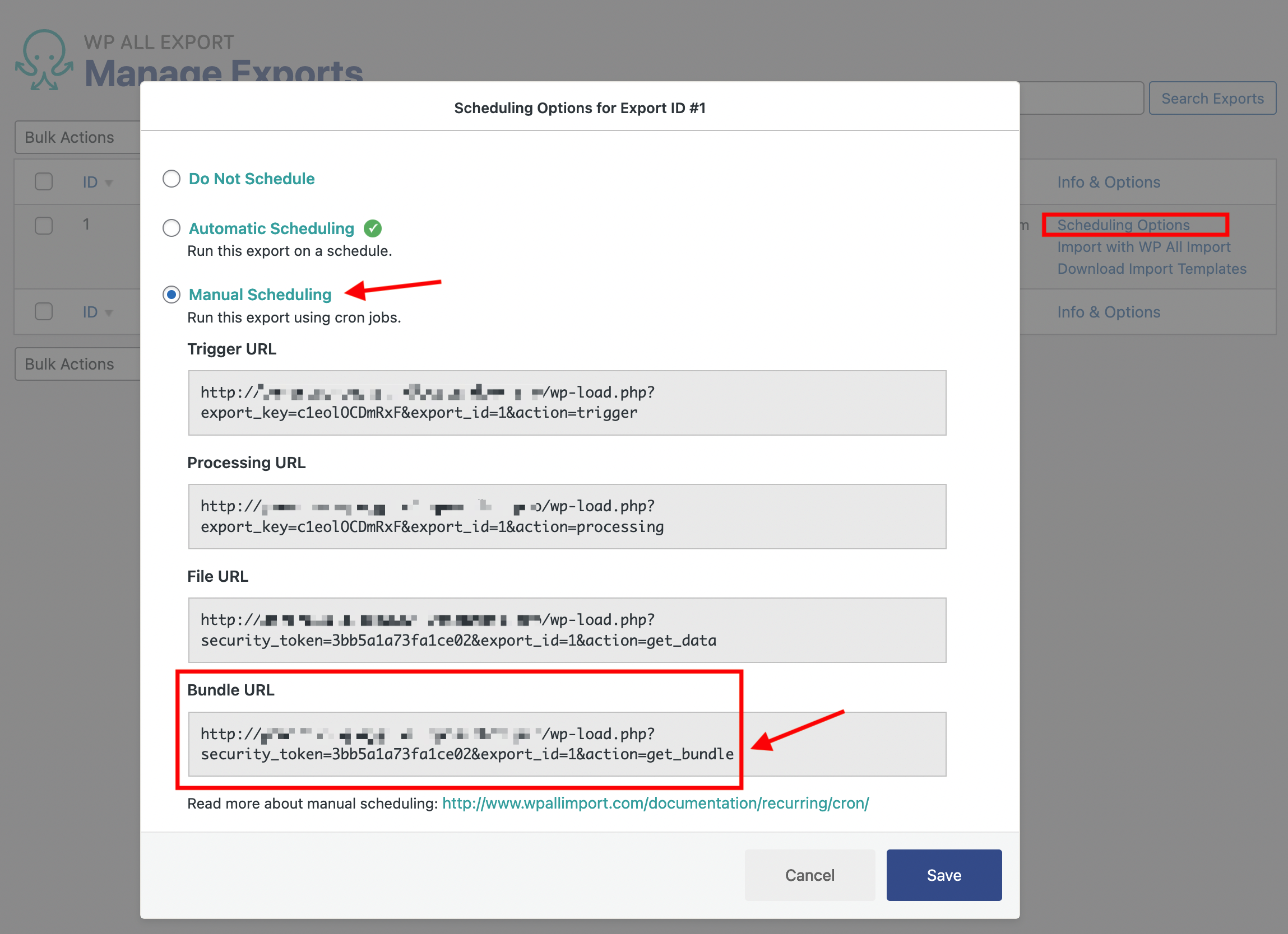 You can set up both the export and import processes to occur regularly at a scheduled time. Since you're scheduling the whole migration, you should set it up so that the export finishes before the import starts. The following scheduling options are available: