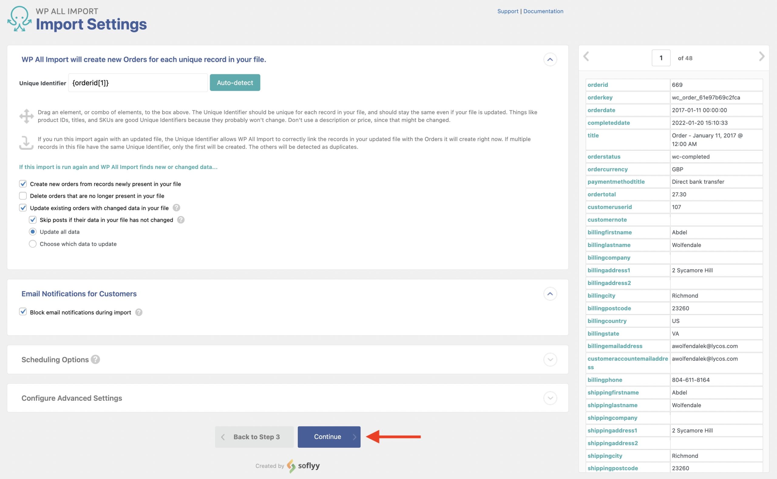 This bundle file helps make your order migration quick and simple, as it contains all exported WooCommerce orders along with a settings file to configure WP All Import automatically.