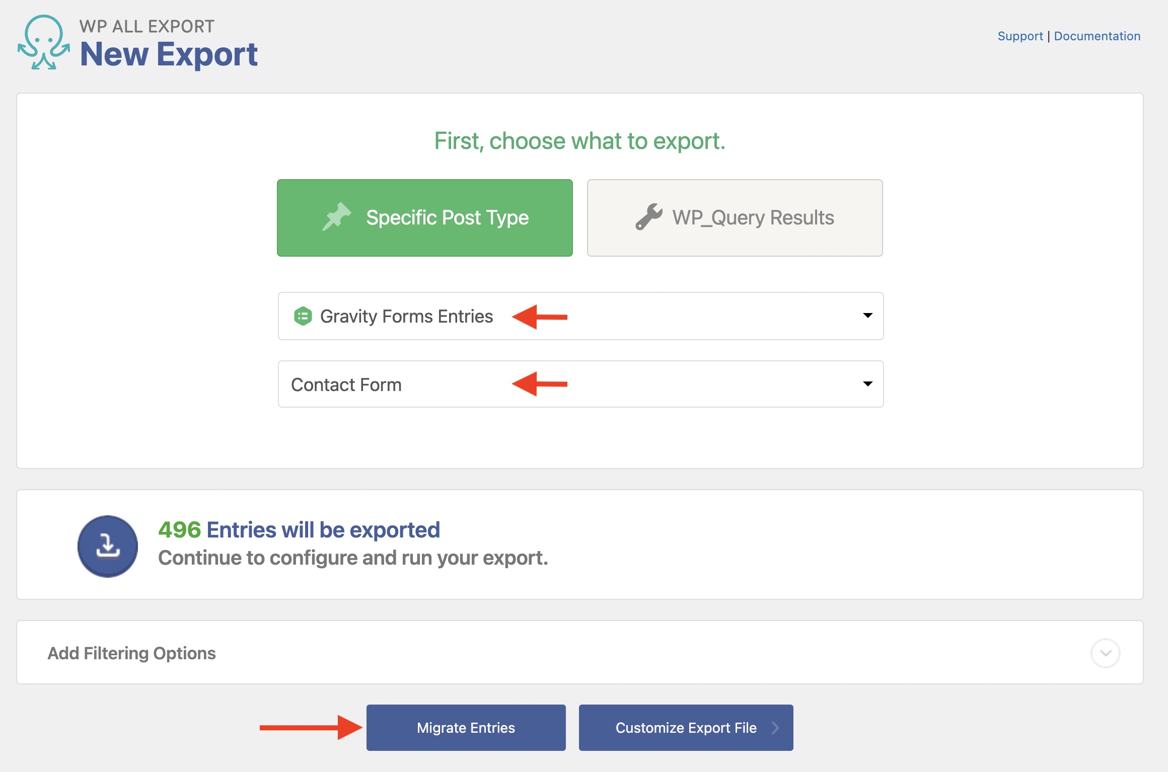 To migrate Gravity Forms entries, you need to have both the Gravity Forms Import Add-On and Gravity Forms Export Add-On active on your site, along with WP All Import and WP All Export.