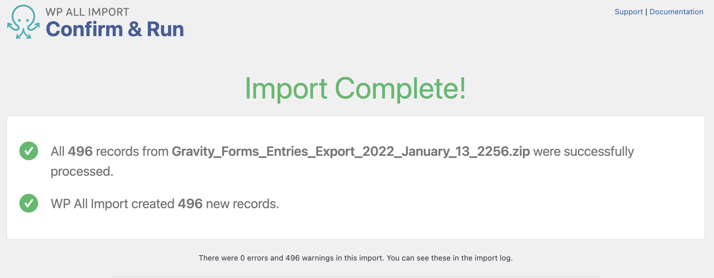 We won't describe these tasks here because this subject is covered in detail in the How to Import Gravity Forms Entries documentation page.