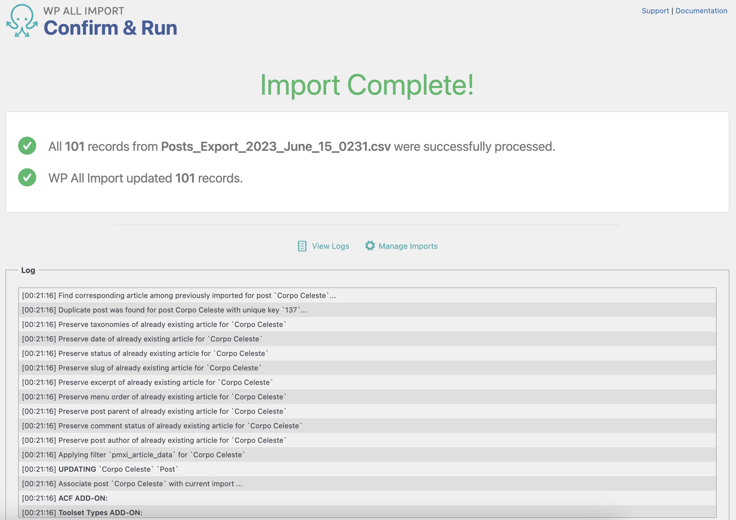 Next up, the Confirm & Run screen will display an import summary (not shown). You can review everything in this summary and then click Confirm & Run Import button to run the import.