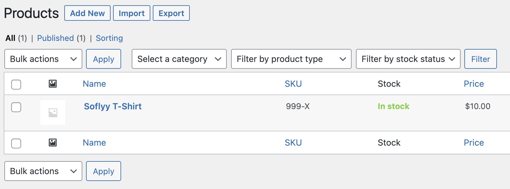 For example, say you have the Soflyy T-Shirt simple product with an SKU of 999-X and a cost of $10 USD per t-shirt. You were previously selling a unique size and all in the same color.