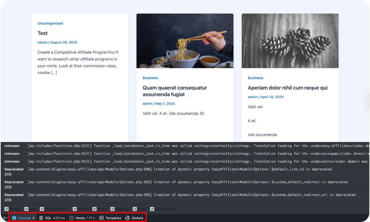 Unlike most other WordPress debug plugins that include features to enable the built-in WordPress debug mode from the admin dashboard, Debug Bar requires you to enable it in the wp-config.php file manually. Once this is done, you can also monitor PHP warnings and notices from the plugin’s interface.