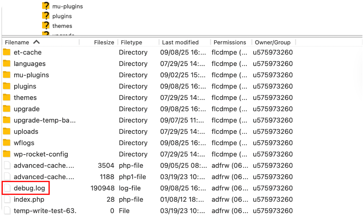Once data is added to the debug.log file, you can access and view it via FTP.