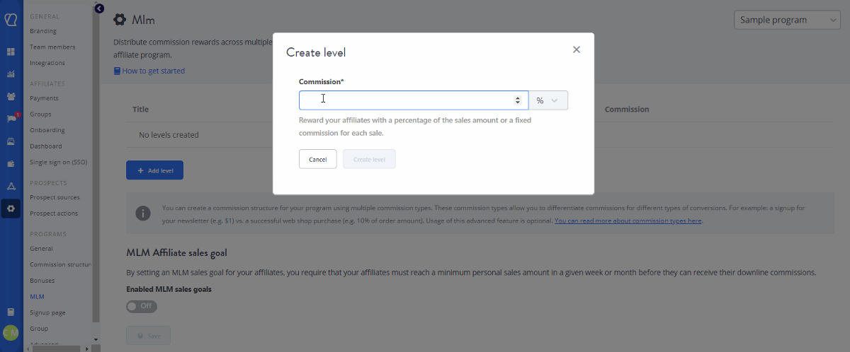 This is where your main dashboard lives and where you will manage all aspects of your referral program. You'll define key details like your program's name, the landing page for affiliate links, and the default commission structure, which can be a percentage or a fixed amount.