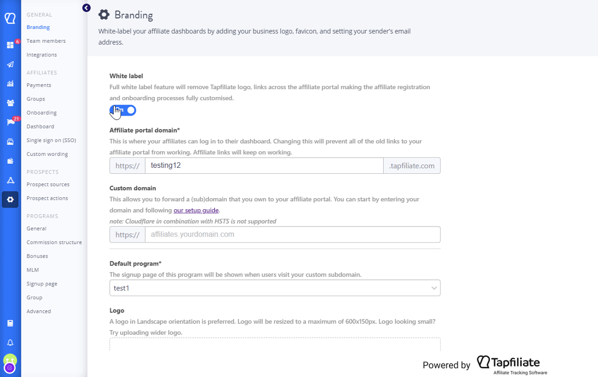 You can host your program on a custom domain (like affiliates.yourstore.com) and, on higher-tier plans, fully white-label the affiliate portal to remove all Tapfiliate branding.